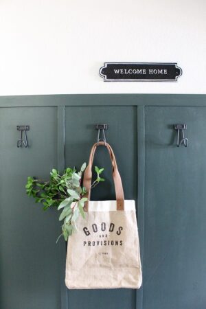 Burlap Market Tote | Cast Iron Hook | Welcome Home Sign |