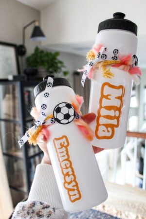 This year was the first year we made an effort to get the kids into sports. We finally felt like they were old enough and had an idea of what they wanted to do. It has been the most fun thing ever! I never realized how much of a “Soccer Mom” I was. So naturally, the urge to do something special for the girls and their teams began. They were having the time of their lives, so I decided to put together a DIY team gift for everyone. I made personalized water bottles for the girls, and they turned out super easy and totally adorable!