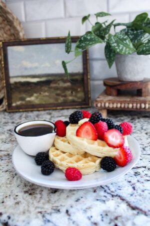 I made a pledge on Instagram after we made this Sourdough Discard Waffle Recipe. “I Amanda, will never make buisquick or frozen waffles again. Ever.” Once you make these delicious crispy on the outside, fluffy on the inside waffles you will NEVER go back! Most sourdough starter discard waffle recipes I found called for resting the dough in the fridge overnight or fancy ingredients like buttermilk. This Mom of 3 doesn’t have time for that. I wanted a recipe that I could whip up on Sunday morning for the family. THIS IS THAT RECIPE!